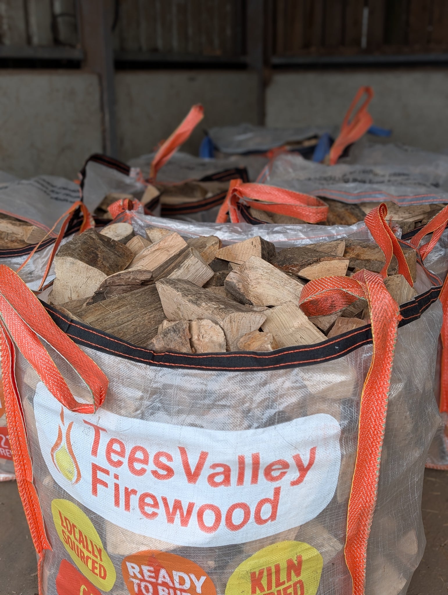 A 0.62m3 dumpy bag full to the brim of mixed species Kiln Dried hardwood logs, dried to approx 15% moisture and ready to burn immediately. Cut and split by ourselves to a standard 25cm length with a diameter of 5-15cm generally. This size of log will fit in the vast majority of current 5kw+ stoves or open fires without any extra work from you. However, its not a bad idea to have a chopping block and a medium sized splitting axe available in case of the odd big chunk that sneaks through!